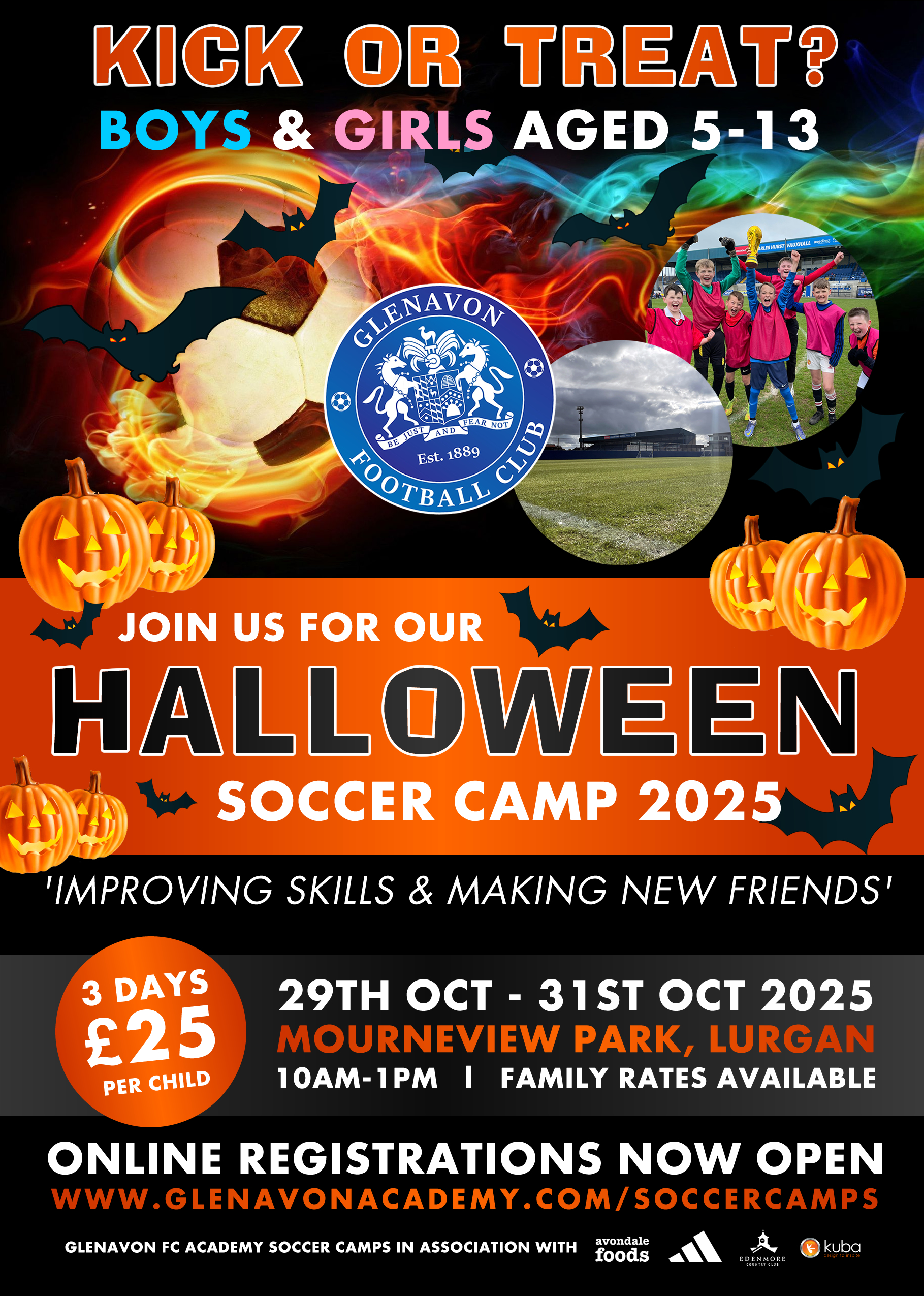 Register your childs place for the Glenavon FC Academy Halloween Soccer Camp today;